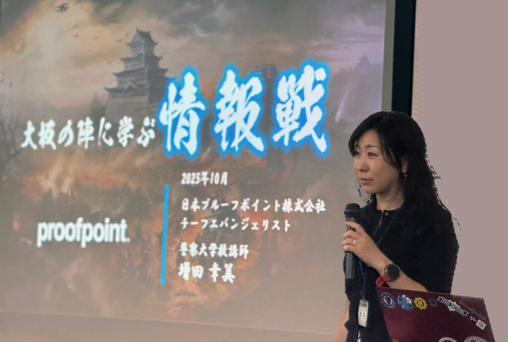 日本プルーフポイント株式会社チーフエバンジェリスト/警察大学校講師の増田 幸美様より「戦乱の世の情報戦 ~大坂の陣に学ぶサイバーセキュリティ~」と題して講演いただきました。前回ご好評いただいた歴史を絡めた講演の第2弾です。
